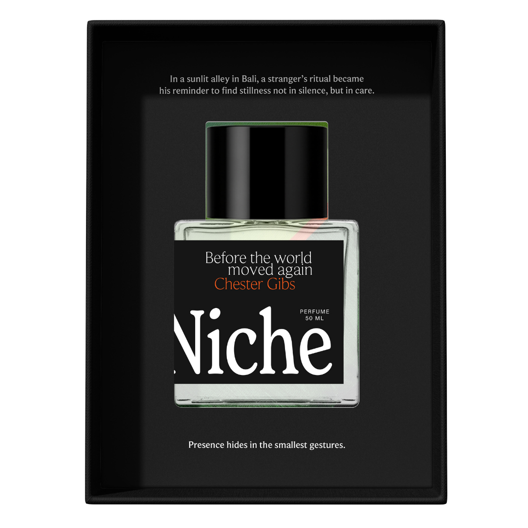 Chester approaches scent the way some people approach memory — by following the quiet thread it leaves behind. What began with bottles on a shelf became a way of seeing: perfumes as colours, moods, and small shifts in atmosphere.
